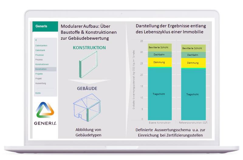 Using GENERIS®, an architect or construction company can determine the environmental effects of individual building materials early on in the planning phase and optimize the selection of the building materials to be used accordingly. The tool shows factors such as climate change potential, and a variety of other environmental impacts, in quantitative form. The entire life cycle is taken into account — from the extraction of resources in nature, through the production and use phases, right up to disposal or recycling.