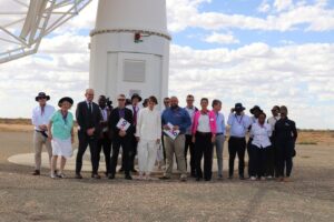 On March 28, the German Federal Research Minister Bettina Stark-Watzinger visited the Square Kilometre Array Observatory (SKAO) supertelescope under construction in South Africa together with Dr. Lindsay Magnus, Director of SKA-Mid in South Africa, and Prof. Michael Kramer, Director at the Max Planck Institute for Radio Astronomy (MPIfR) in Bonn. There, she announced that Germany will join the international SKAO project. The Max Planck Society is providing about 21 million euros to support the project.